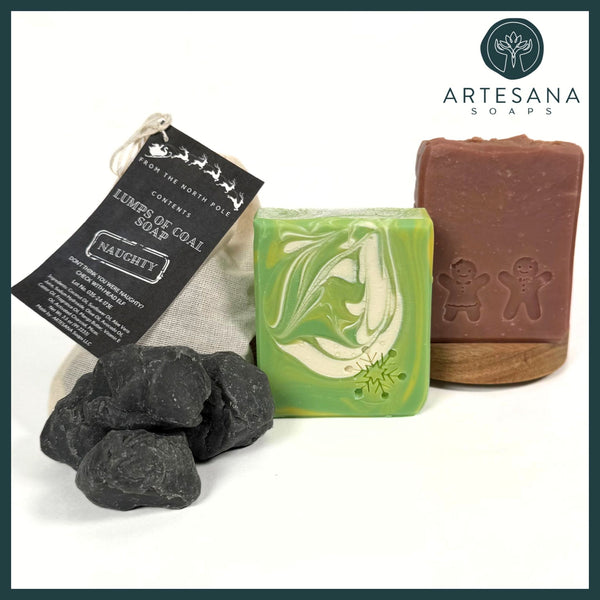 Lumps of Coal Soap - Have they been naughty or nice this year? Either way, our Lumps of Coal soap make the perfect stocking stuffer, gag gift, or dirty Santa gift! A nice smoky wood scent that will send you back to cold winter nights around the bonfire, warm and inviting with a hint of the outdoors.